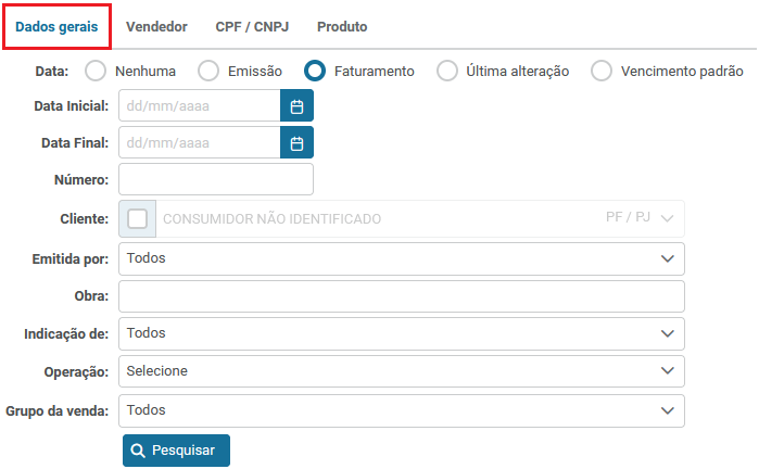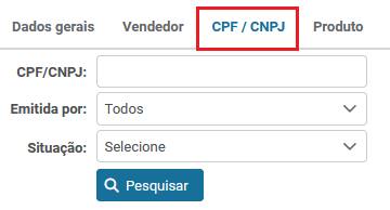 Para pesquisar vendas por “CPF/CNPJ” será necessário: