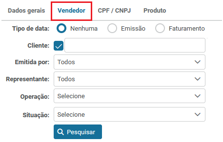 Para pesquisar vendas por “Vendedor” será necessário: