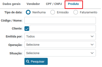Para pesquisar vendas por “Produto” será necessário: